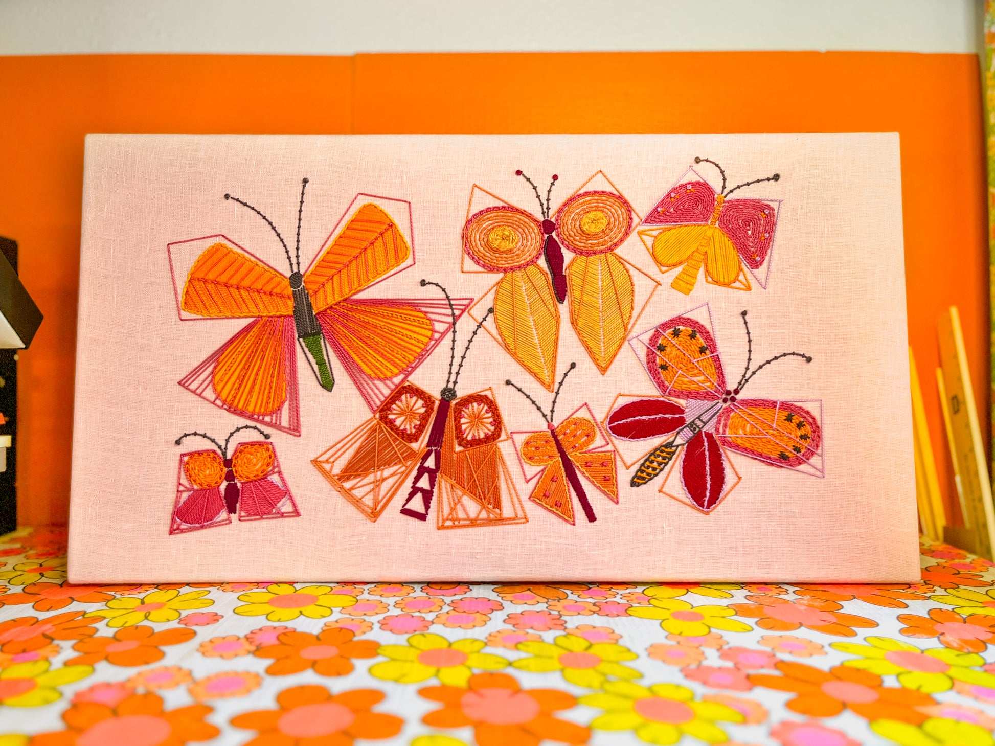 - All embroidery and crewel commissions will be sent back framed on wooden stretchers and backed with kraft board, ready to hang using command strips upon arrival.